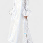 • Ruch i detale: rękawy w falbanki dodają odrobinę dynamizmu, nie kompromitując czystej sylwetki.
