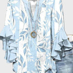 Anna | Jasnoniebieska Bluzka reprezentuje ponadczasową elegancję w letniej garderobie. Jasnoniebieski odcień, w połączeniu z białymi wzorami liści, odzwierciedla czystą jakość i wyrafinowanie. Romantyczne falbany na rękawach dodają ruchu i kobiecości, podczas gdy luźny krój zapewnia codzienny komfort bez kompromisów w stylu. Rzemiosło tkwi w precyzyjnej kompozycji materiału i kroju, utrzymując Annę w ponadczasowej tradycji kolekcji. Ograniczona dostępność i klasyczny fason sprawiają, że Anna jest wyjątkowym dodatkiem do letniej kolekcji i ulubieńcem w garderobie na długie lata.