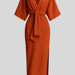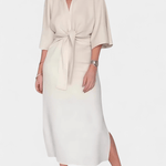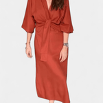 Astrid to elegancka sukienka midi od Ainhoa™, w której głęboki dekolt w kształcie litery V, rękawy kimono i wyraźny węzeł z przodu łączą się w wyrafinowanej, ponadczasowej sylwetce. Strukturalna, miękka jakość tkaniny zapewnia precyzyjne dopasowanie i korzystny układ, który podkreśla talię, nie rezygnując z komfortu. Każdy detal odzwierciedla dbałość o rzemiosło i staranny dobór materiałów, tworząc element odzieży, który przypomina dziedzictwo, a nie trend. Przy ograniczonej dostępności, Astrid prezentuje się jako sukienka inwestycyjna, która łączy ponadczasową elegancję z atrakcyjnością kolekcjonerską i zrównoważoną wartością w garderobie.