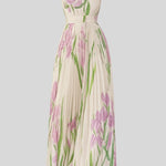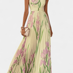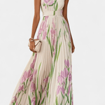 Trine | Sukienka Maxi emanuje subtelną elegancją i wyjątkowym rzemiosłem. Sukienka zaprojektowana jest z kwadratowym dekoltem, plisowanym szyfonem oraz marzycielskim, lawendowym nadrukiem w kwiaty, który tworzy ponadczasowy, wyrafinowany wyraz. Każdy szew odzwierciedla tradycyjne krawiectwo i nowoczesną lekkość, a materiały wysokiej jakości zachowują swój urok przez sezony. Trine przyciąga konsumentów ceniących jakość oraz kolekcjonerów, którzy doceniają dziedzictwo i dyskretny luksus. Delikatne drapowanie zapewnia łagodne opadanie, które towarzyszy Ci w słoneczne popołudnia i niezapomniane chwile na świeżym powietrzu, podczas gdy nadruk i pasek w talii dopełniają ponadczasową sylwetkę. Długość maxi oznacza wszechstronność i elegancję bez kompromisów w kwestii komfortu.