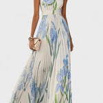 • Materiał i Rzemiosło: Sukienka wykonana jest z wysokiej jakości materiałów z tradycyjnym krawiectwem i nowoczesną lekkością; plisowany szyfon tworzy miękkie, płynące drapowanie.