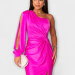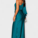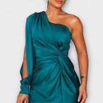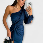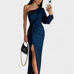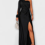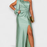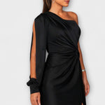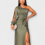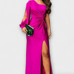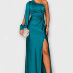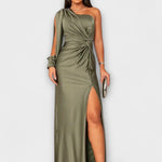 • Sylwetka i Komfort: jedno ramię, rzeźbiarskie linie i boczne rozcięcie zapewniają swobodę ruchów bez kompromisów.