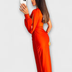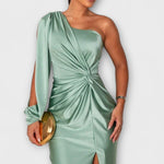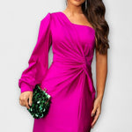 • Elastyczne Zastosowanie: idealna na gale, wesela i wieczorne wydarzenia; drapowany pas i biodra podkreślają naturalne krzywizny.